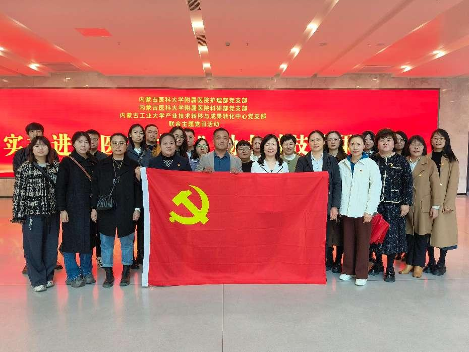 为推动医工交叉迈向新高度,为我区卫生健康事业贡献更多智慧力量,3月22日,内蒙古医科大学附属医院护理部党支部、内蒙古医科大学附属医院科研部党支部与内蒙古工业大学产业技术转移与成果转化中心党支部联合开展了以“扎实推进“医工结合” 助力科技成果转化”为主题的党日活动,并重温入党誓词,永葆党性,砥砺前行。