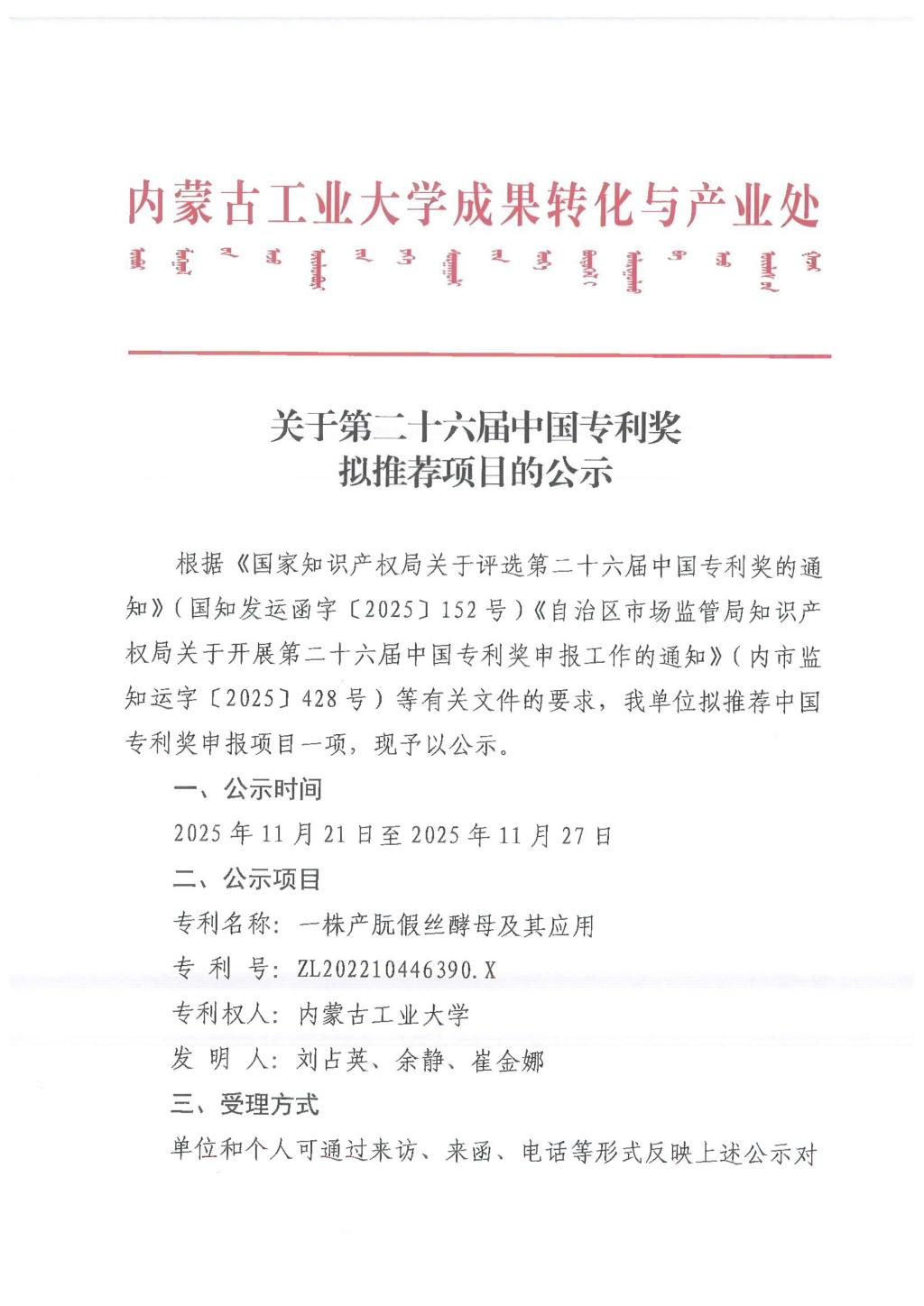 关于内蒙古工业大学第一批科技成果转化代理服务机构遴选结果的公示